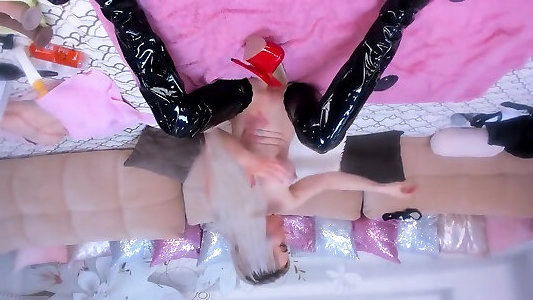 jordanne kali en bottes en latex rouge chatte baisée au lit