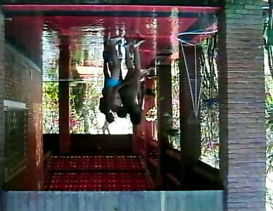 une femme encrée danse avec des heurtoirs épais rebondissant