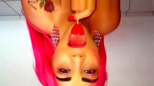 cul de latina aux cheveux roux baisé par un énorme faux pénis et un bâton de baise