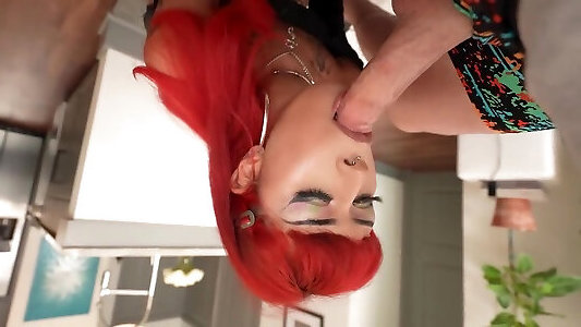une petite bikkeny step mom aux cheveux roux suce une grosse bite pendant les heures de bureau