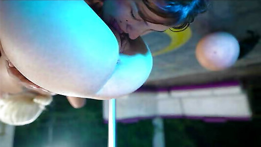 une strip-teaseuse baise une blonde à une soirée entre célibataires