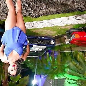 sexe risqué avec une petite fille maigre à la chatte serrée dans la piscine