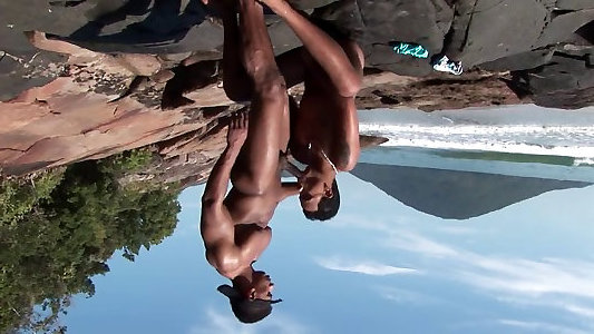 un duo latino se cogne sur des rochers près de la rivière
