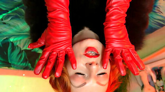 fourrure et longs gants en cuir rouge asmr flick gros plan avec arya