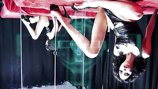 la victime adore big bhoy jambes de la dominatrice dans des filets de pêche et des talons hauts
