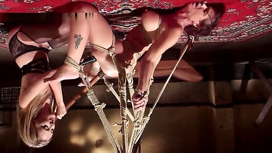 deux esclaves lesbiennes excitées en position 69 orgasming dur