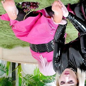 lesbiennes fétichistes de la semelle coochie samusent avec des collants en vinyle spandex et des ballons à air - arya grander et model fetishaura