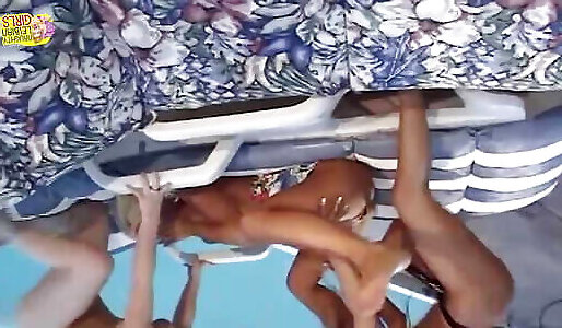 trois coquines coquines apportent un gode ceinture au bord de la piscine pour profiter dun trio lesbien torride