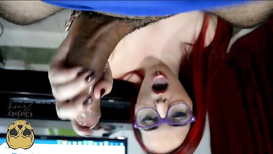 une mignonne à capuche suce profondément un gros wang dans un épisode de cosplay
