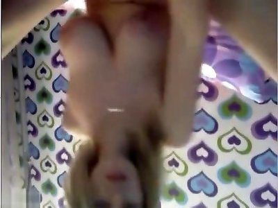 petite salope blonde se prépare pour une sodomie profonde tout en jouant avec un gros gode