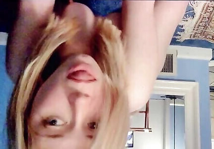 une petite salope se fait défoncer la gorge, reçoit beaucoup de salive de la part de upside dow
