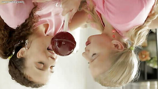 chloe et caroline partagent une grosse sucette avant leur aventure sexuelle lesbienne