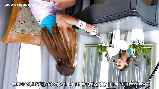 une adolescent fille mignonne, innocente et excitée se masturbe debout et se tord de plaisir pendant que ses fans font vibrer sa chatte