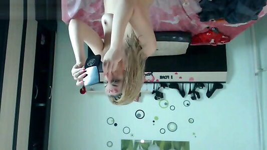 la délicieuse nana russe nastys se maquille pendant que bf caresse ses seins