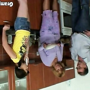 un mec plus âgé qui baise deux belles-sœurs ados minces