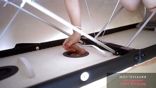 lesclave de chasteté se fait traire tout en mangeant les pieds de la créature