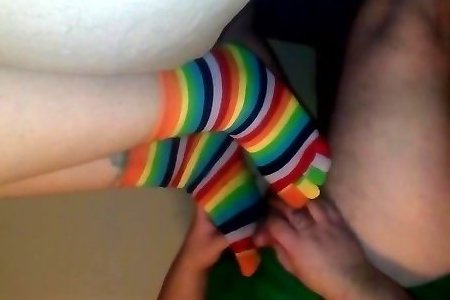 domination des pieds, avec masque et chaussettes arc-en-ciel avec tir à largent