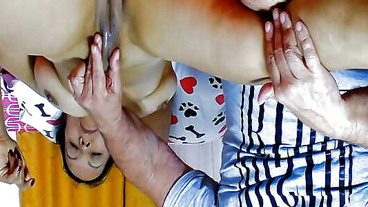 je fais l&39;amour à mon amant pendant qu & 39; il ferme les yeux, avec un massage et un léchage de chatte dans le canapé de ma femme