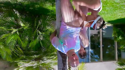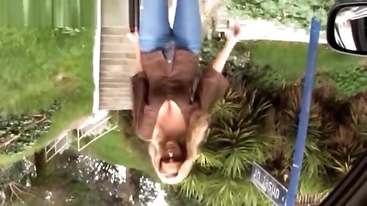 une blonde sexy se fait couvrir les seins massifs par une vieille bite à lextérieur