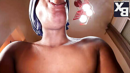 busty ebony sweetie jongle avec sa chatte sur un énorme serpent pantalon