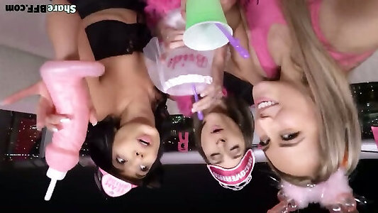 soirée pyjama gang bang anal avec kit lee, kat lee et tracy venus