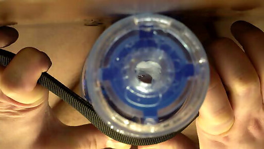un mec ultra-pervers caresse durement sa grosse trique avec une lampe de poche, crie et saute à lintérieur du jouet