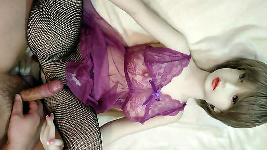profitez de la lingerie violette nymphe hikaru et des bas noirs en filet deux fois
