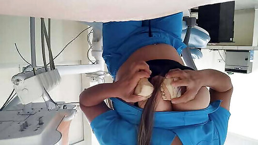 une étudiante dentaire se masturbe dans le bureau du médecin