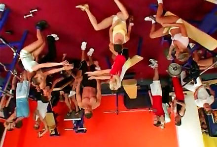 la bombe en forme chevauche de nombreux faux-coq dans la salle de gym