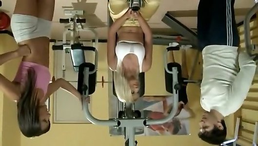 une blonde en forme sentraîne avec une bite dure dans la salle de sport