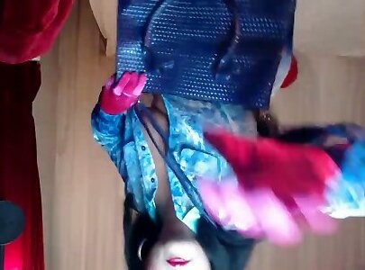 ma femme essaie un nouveau bustier et des leggings en cuir trop serrés pour son gros cul!