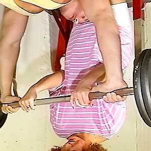 vers le bas saucissonner e03 énormes seins milf en short de cul de yoga fait des courbettes de tige