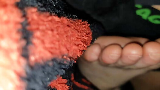 footjob de chaussettes à cinq orteils avec une grosse remorque déjaculation