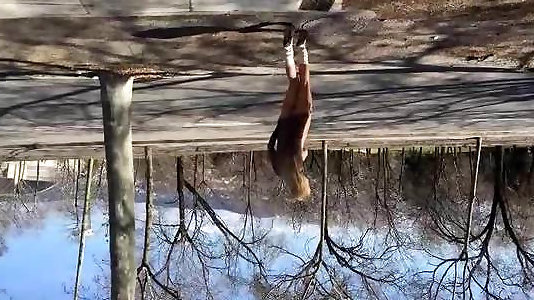 une grande nymphe courbée se penchant pour révéler sa chatte et doigtant sa chatte crue serrée