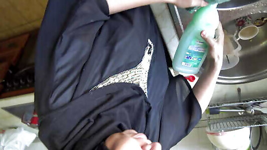 femme de ménage baisée par son patron tout en lavant la vaisselle