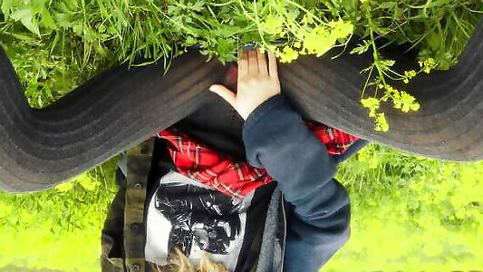 nous sommes allés avec une amie dans la forêt et elle a décidé de se masturber dans la nature