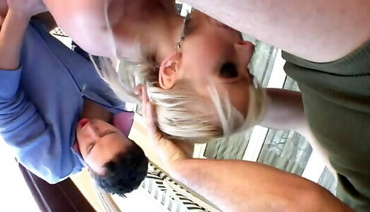 une blondinette impressionnante suce énergiquement des branlettes et une gorgée de sperme