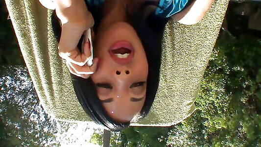 le jardinier baisse sa garde alors la brune affamée se jette sur lui et suce profondément avant de manger du sperme