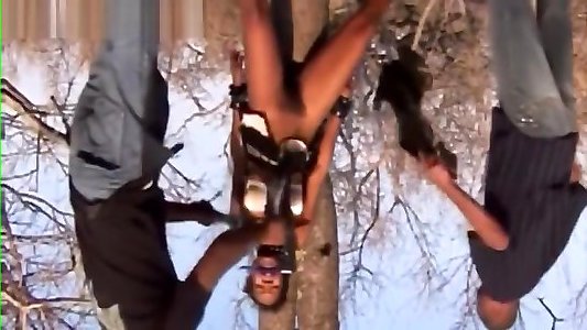 milf ébène attachée et baisée par deux bites gigantesques