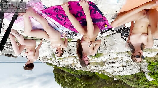 en vacances avec 4 modèles instagram chauds bronzant nus