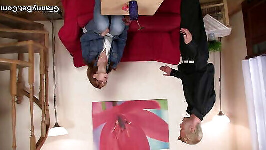 grand-mère âgée bien rasée chevauche la bite monstrueuse de stranger&039;s