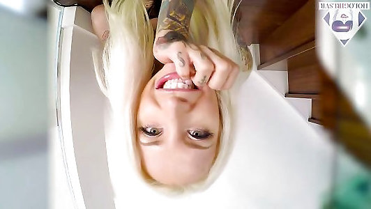 une mystérieuse cascadeuse aux cheveux bruns souvre et se doigte en direct