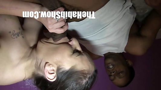 trois voies bisexuelles avec une bite à gorge profonde aux cheveux noirs qui a ravagé le cul de lhomme