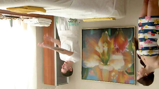 un modèle de maillot de bain super torride avec des seins minuscules est fourré en levrette sur le sol du salon