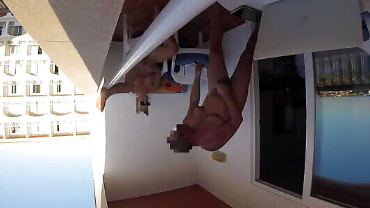 pendant que ma copine se détend à proximité, je baise notre voisin