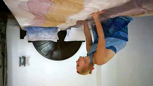 adolescent blonde courbée prend des poses séduisantes girls and berenjan dans le lit