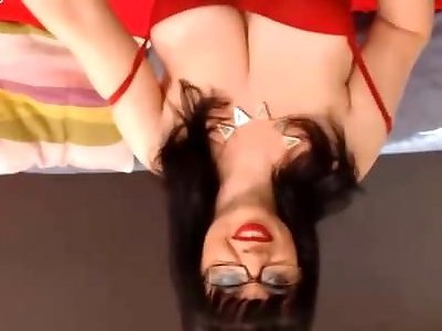 latina chaude aux gros seins naturels doigte sa chatte humide et suce un gode