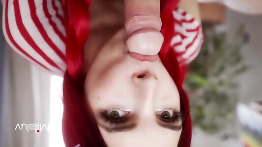 tête rouge en bikini avec de gros seins naturels suce une grosse bite avec skylar snow