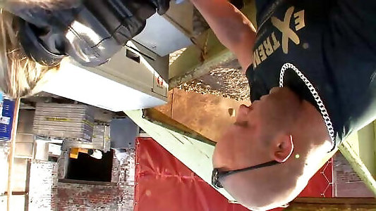 un cascadeur aux seins charnus et courbés rempli d&039; une grosse bite de routard en plein air trempé de sueur