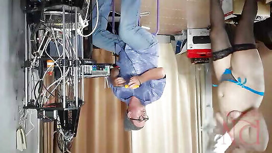 une femme de chambre nue fait le ménage dans le bureau d&39;un stupide ingénieur informatique. véritable caméra au bureau. 3